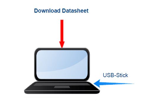 15.- nach dem Erkennen des USB – Stick vom PC , ausgefülltes Datasheet auf den USB – Stick laden